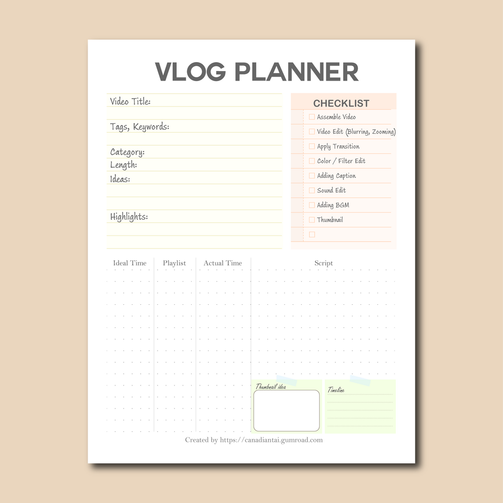 This is a Vlog Planner Template I designed and use.